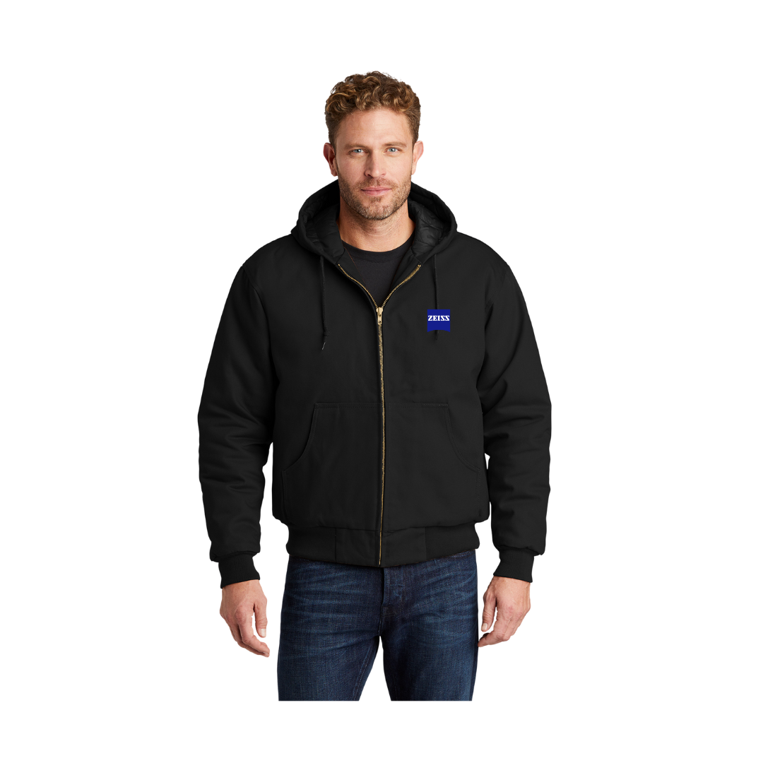 The Timberline hooded jacket features a heavyweight 12 oz. cotton canvas shell with 6 oz. polyfill quilted lining in body and 4 oz. polyfill quilted lining in the hood and sleeves. Also features two front pockets with zippers, one inner right chest pocket with zipper, and rib waistband and cuffs. Temperature Rating -4º to 45º Fahrenheit. Blue and White ZEISS patch.