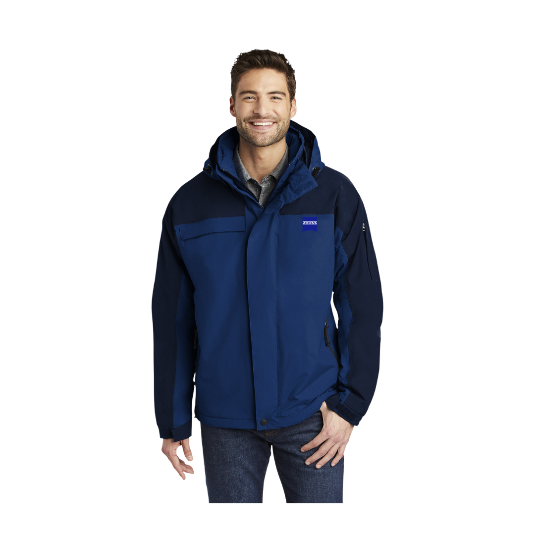 Our Nootka Jacket is fully seamed-sealed for superior waterproof protection. 100% ripstop nylon shell, 2 oz. polyfill insulation in body, 3 oz. polyfill in sleeves. Features Zip-off hood and four zippered pockets. Blue and White Embroidered ZEISS logo.