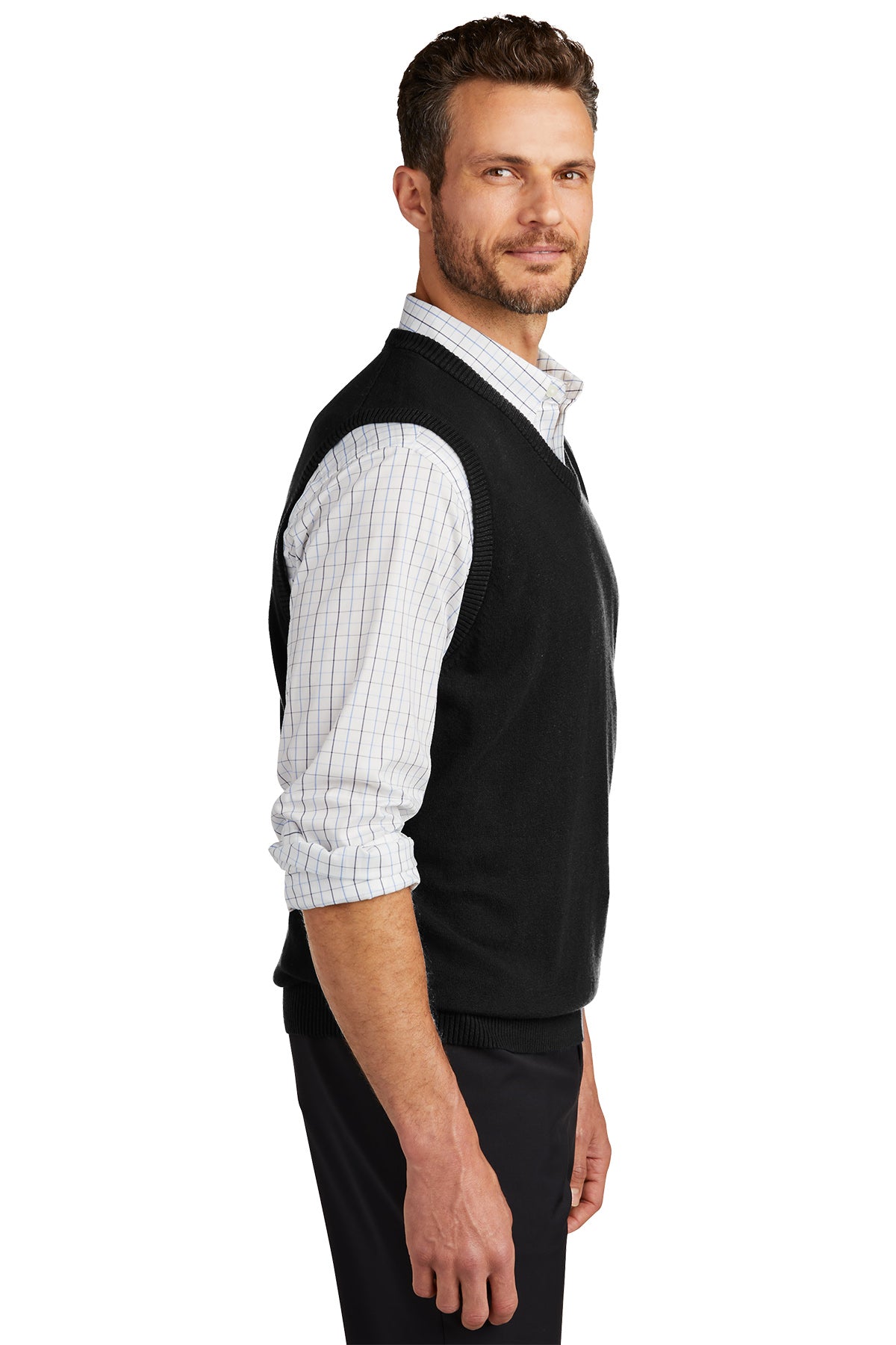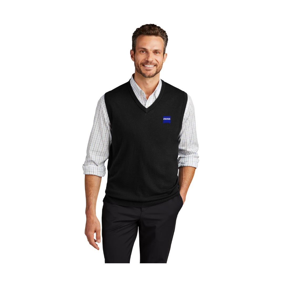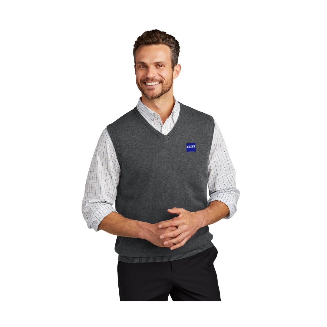 Dress and casual versatile v-neck sweater vest that pair easily with slacks or jeans. S-3XL. Blue & white ZEISS logo embroidered on left chest.